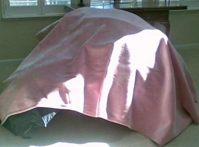 A big, round, pink-igloo fort that my kids made out of umbrellas.