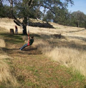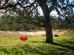 It really is over the river and through the woods to their house. And there are so many fun things for the kids to do, like play in the tree fort and ride the zip line my dad set up (that swings the kids into the branches at the bottom–they love it)…