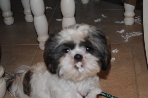 (That would be her with paper towel in her mouth–and all over the floor–looking just a tad guilty.)