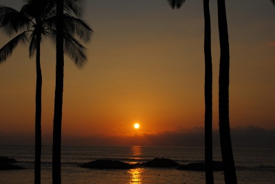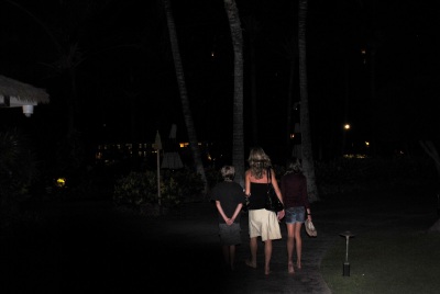 As we walk back from dinner along the path near the beach, the island breeze rustles the palm leaves above us.