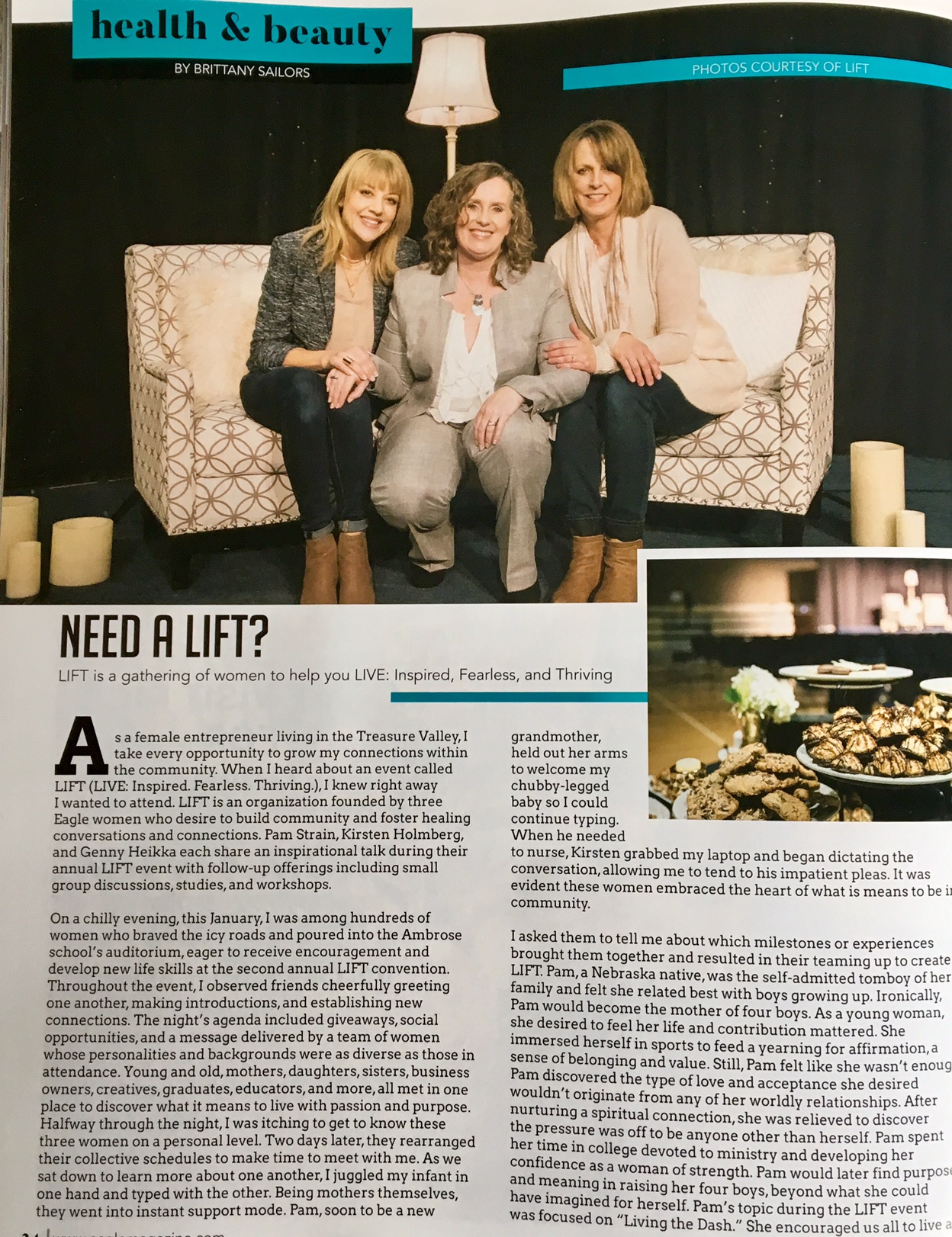 We were also contacted for an interview by Idaho’s premier magazine and were grateful to have the opportunity to share about LIFT — what the event is, how it got started, our heart behind it, and some of our own personal stories.